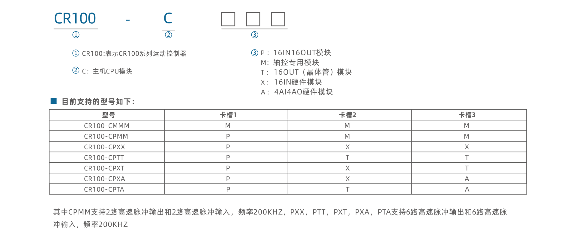 | CR100 | 115x96.5x94mm | 10W | DC24V±15% | 1路、EtherCAT主站,最短設(shè)置系統(tǒng)周期500us | 1 路、10/100Mbps、Modbus TCP協(xié)議、網(wǎng)口下載及監(jiān)視 | 1 路、1200~115200bps、Modbus協(xié)議/自由口協(xié)議 | 2路、1200~115200bps、Modbus協(xié)議/自由口協(xié)議 | 1 路、G代碼文件拷貝 | 1路、USB下載及監(jiān)視 |
